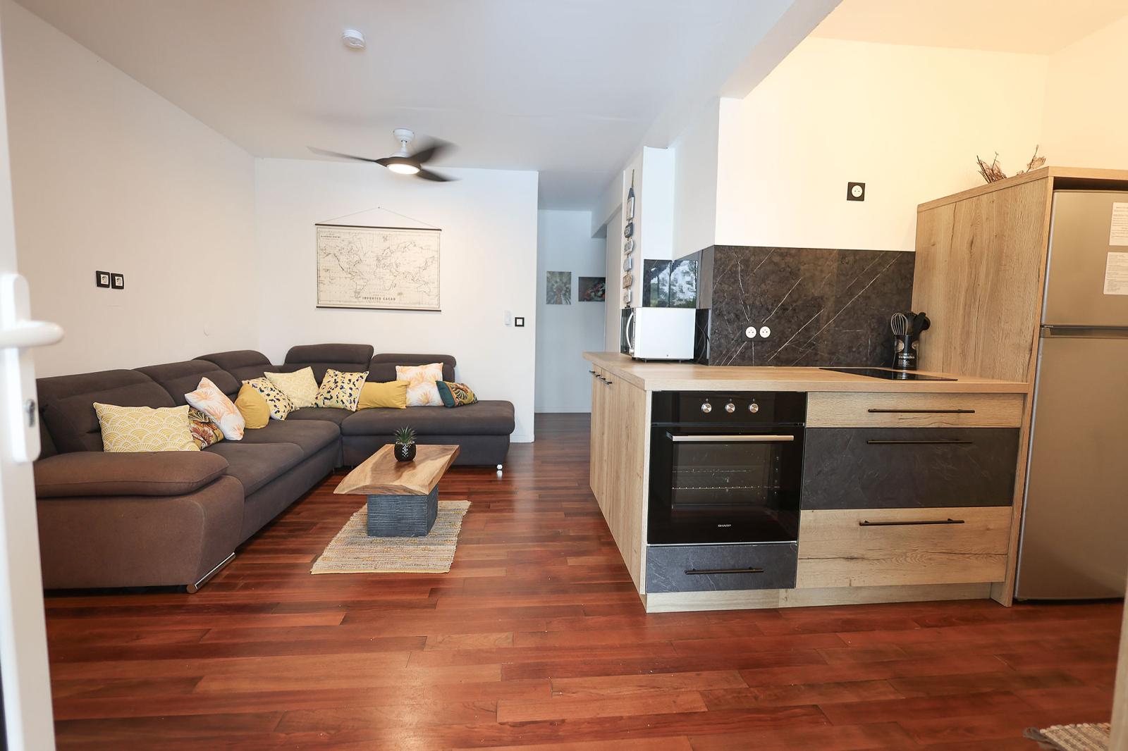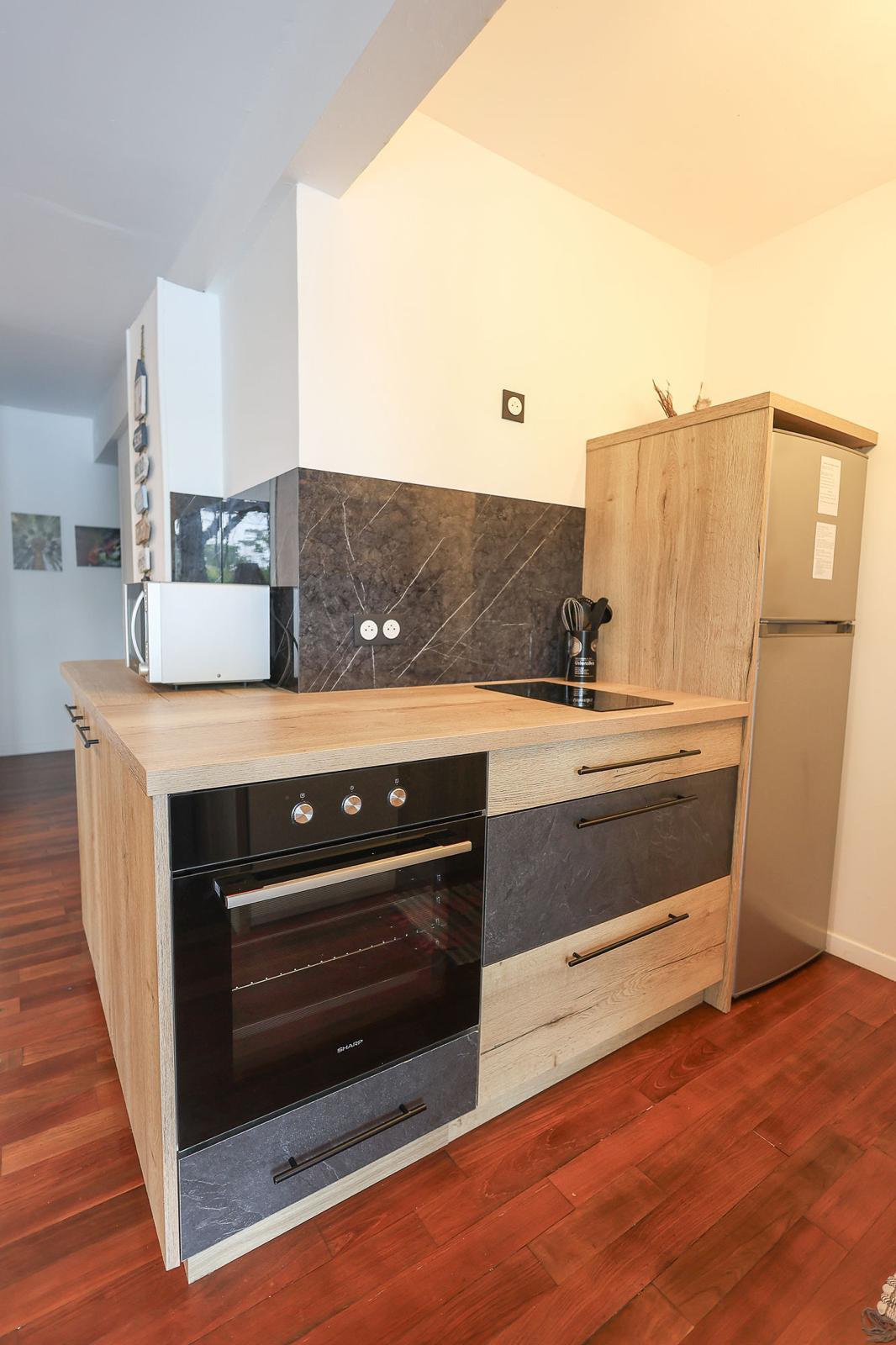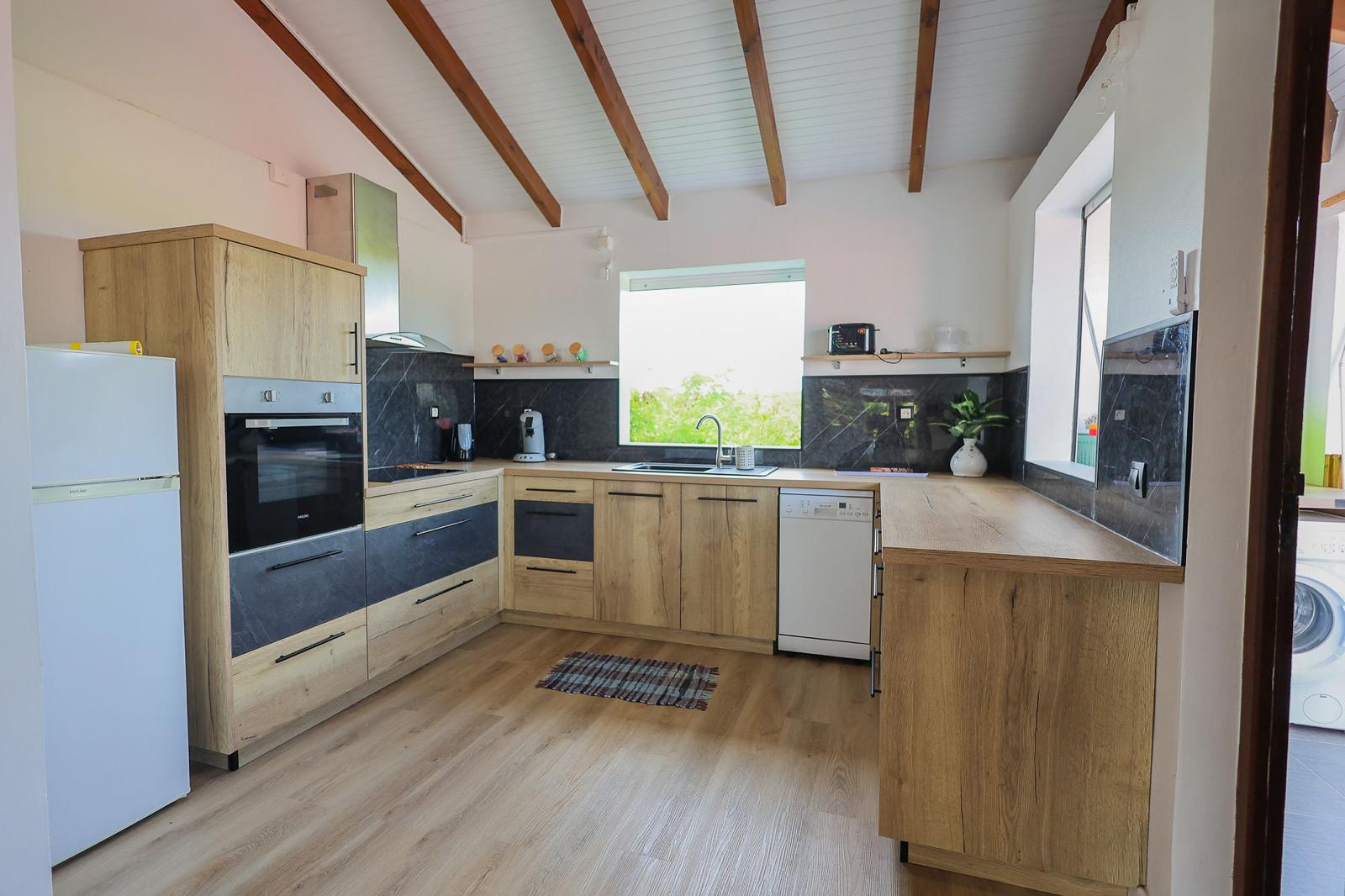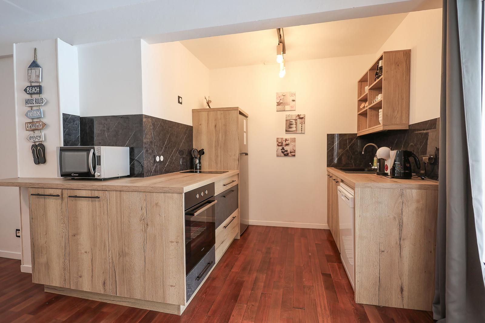 Une cuisine entièrement équipée (lave-vaisselle, micro-ondes, four, plaque de cuisson, réfrigérateur).