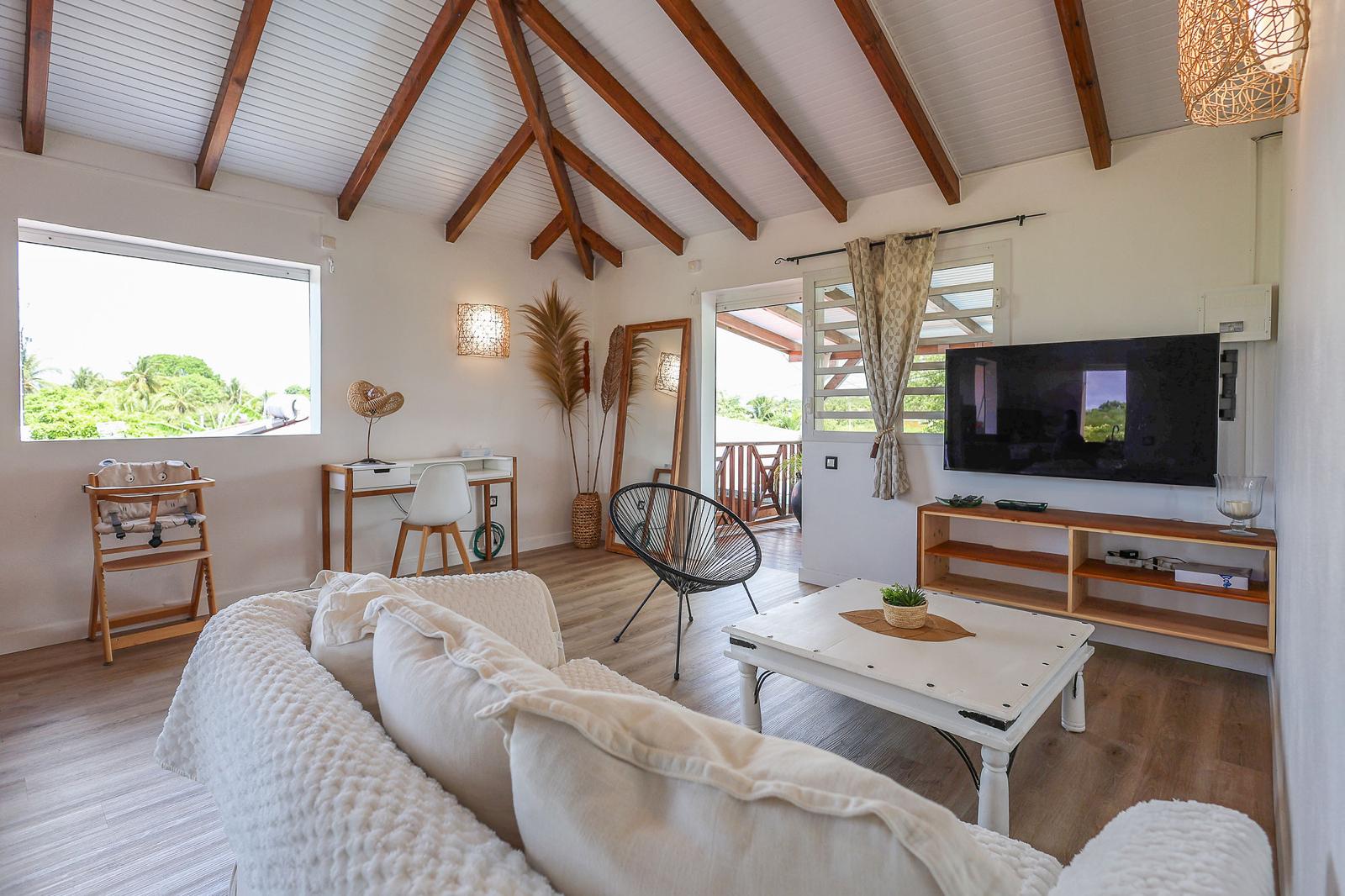 Située à Saint-François, La Villa 0'Mangos vous invite à profiter d'un séjour idyllique dans un cadre enchanteur. Nichée au cœur d'un jardin luxuriant et à proximité immédiate des plages paradisiaques de Raisins Clairs et d'Anse des Rochers, cette villa offre le parfait équilibre entre confort moderne et charme tropical.