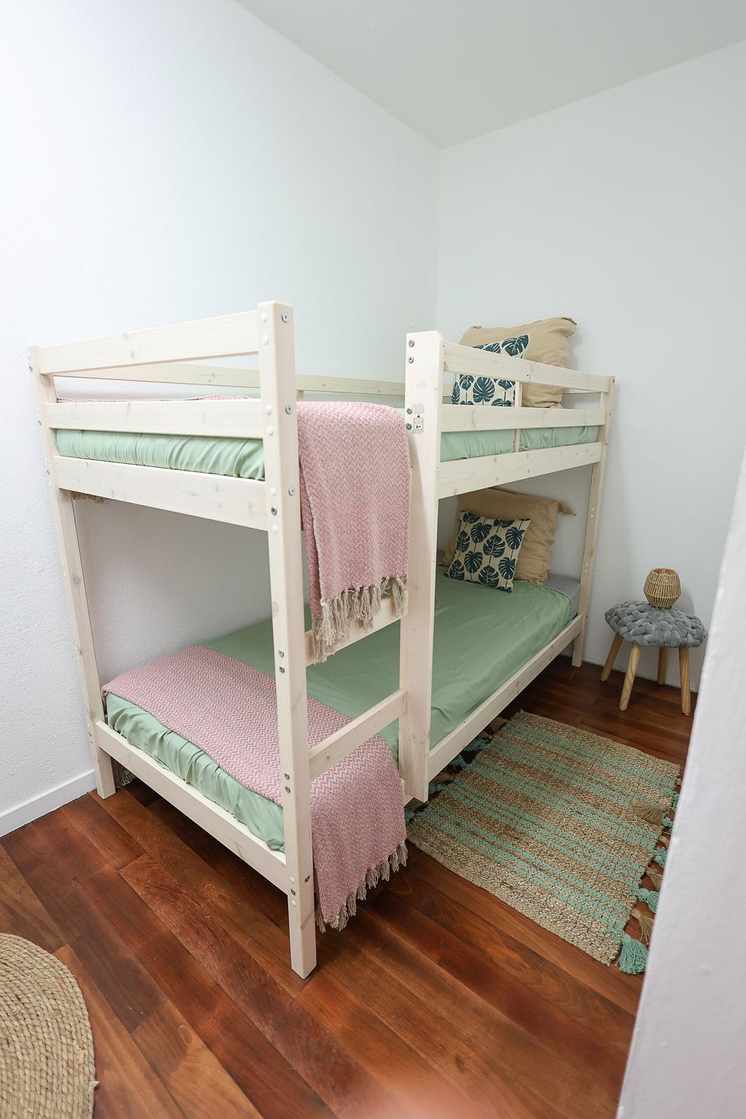 2 chambres spacieuses par logement avec des lits très grands (> 2 mètres de long).