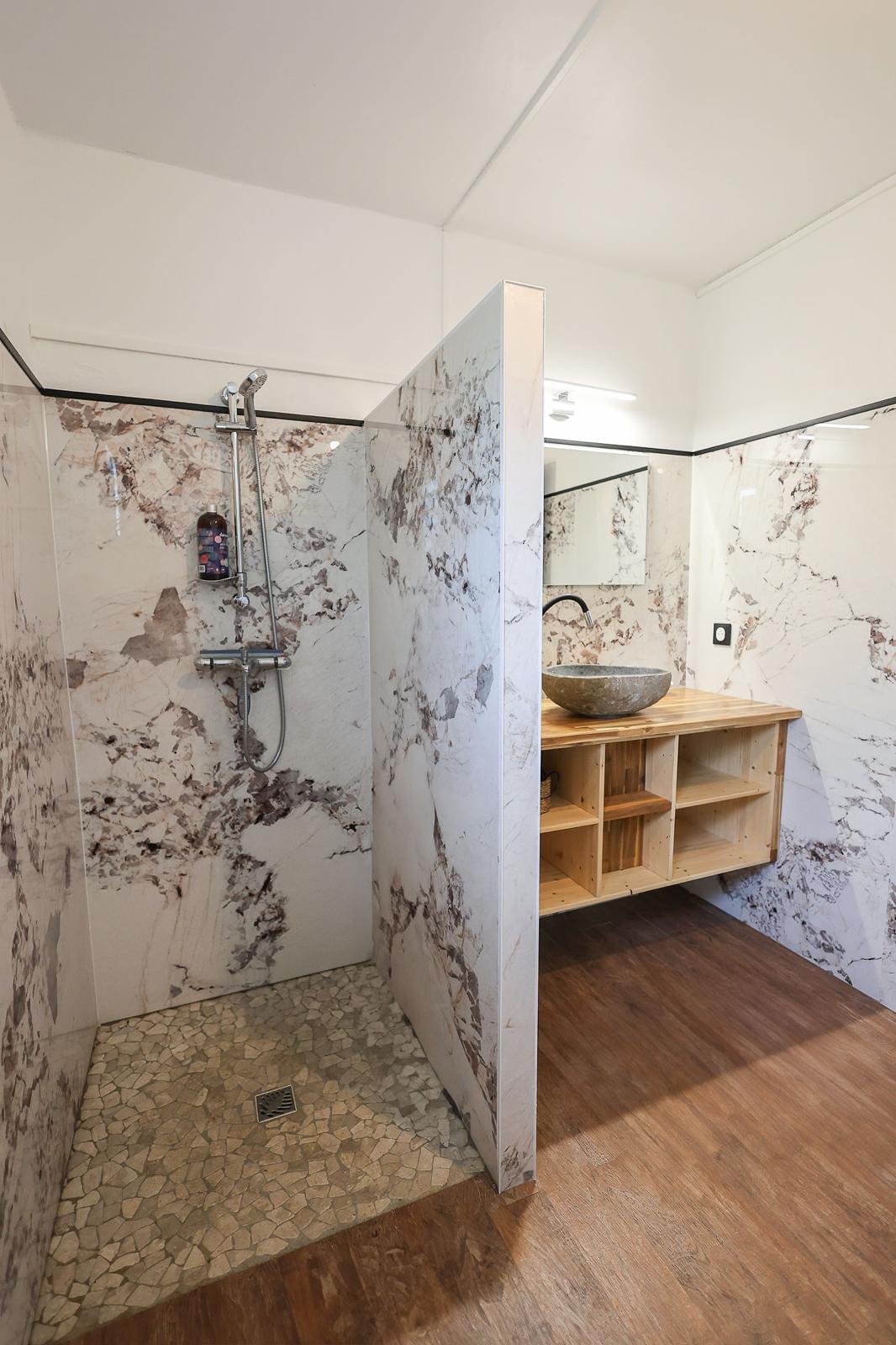 1 salle de bains moderne par logement équipée d'une douche à l’italienne.