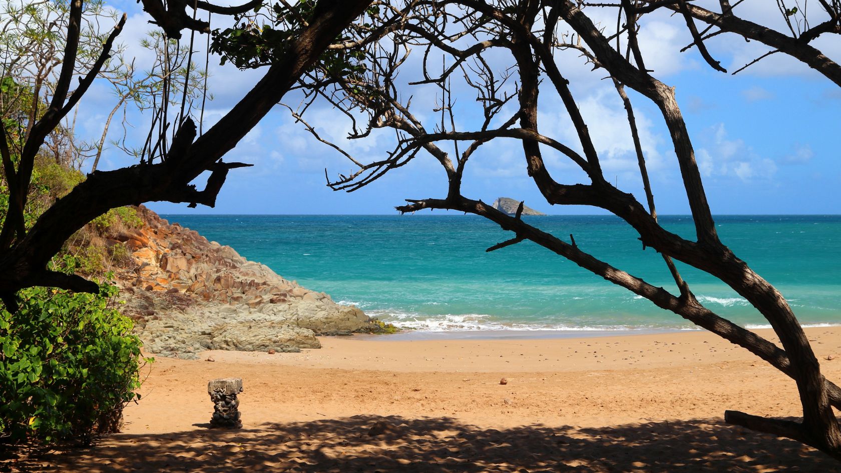 Anse des Rochers : Une plage familiale entourée d’une végétation luxuriante.