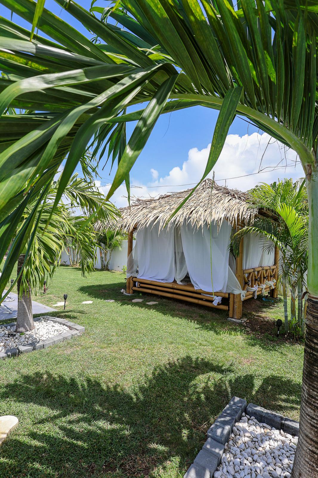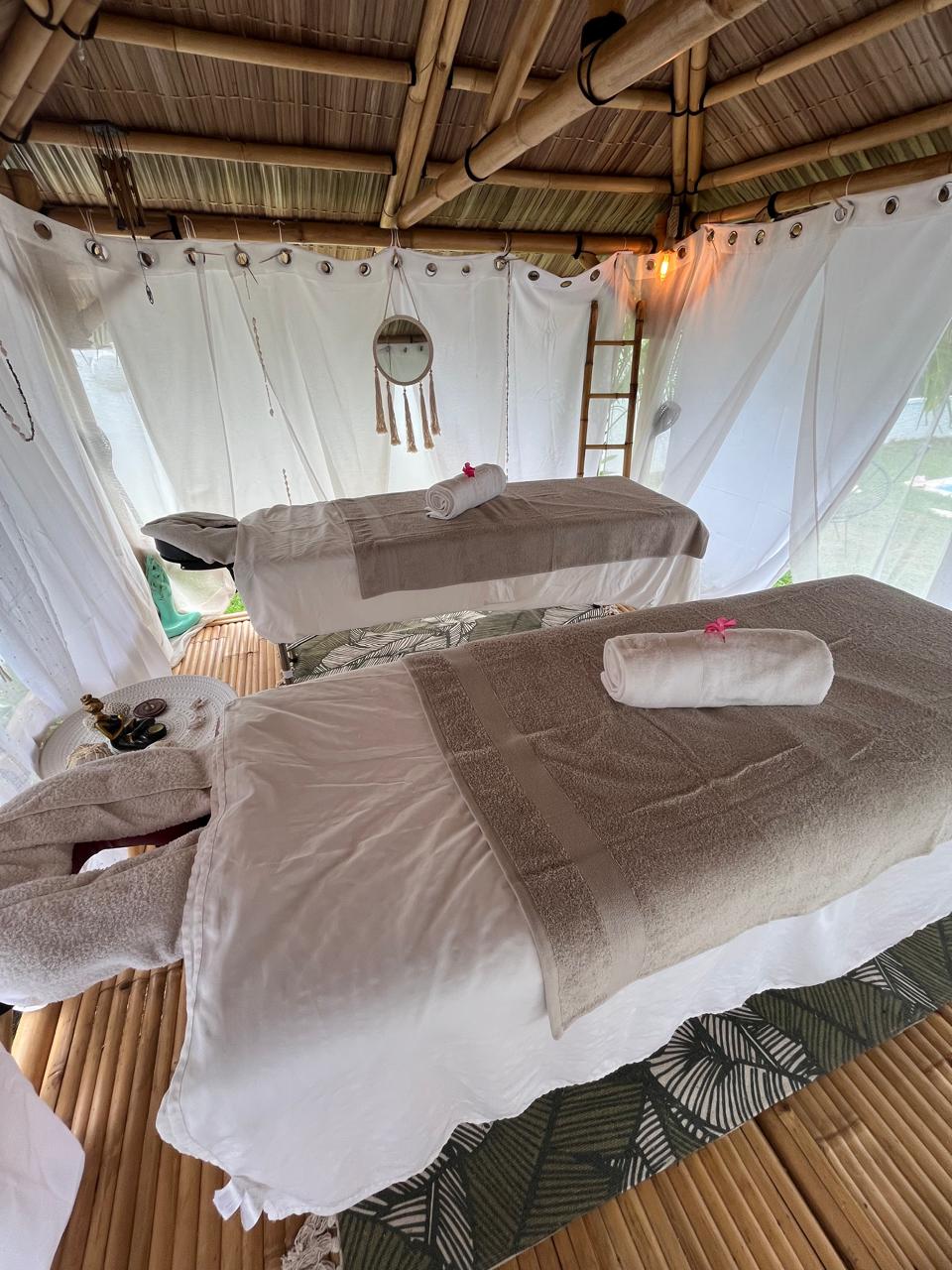Dans le cadre enchanteur de la Villa O'Mangos, profitez d'un espace dédié au bien-être. Delphine vous accueille dans un carbet en bambou, spécialement conçu pour offrir une expérience unique en pleine nature. Ce lieu, à la fois intimiste et ouvert sur le jardin, favorise une connexion profonde avec soi-même et l'environnement.